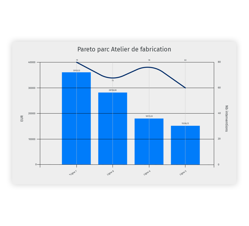 Grâce à l’analyse de Pareto, identifiez immédiatement les actifs qui concentrent le plus d’incidents et de coûts de maintenance.